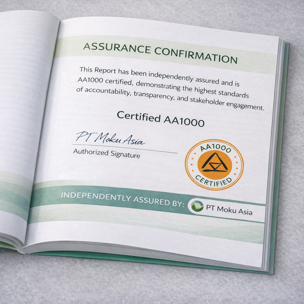 PT Moku Asia telah terdaftar dan berlisensi AA1000AS dari Accountability.org, sehingga proses assurance dilakukan berdasarkan prinsip akuntabilitas, materialitas, inklusivitas pemangku kepentingan, dan responsivitas.